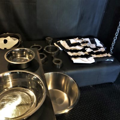 Unser SM Apartment ist etwa 60 qm groß. Bereits im Eingangsbereich fällt die vorhandene Gefängniszelle mit Liegemöglichkeit auf. Im Schlafzimmer bietet das schwere Stahlbett Bondagevergnügen pur. Die Ausstattung wird ergänzt von Musikanlage und Fernseher. Natürlich ist auch WLAN verfügbar, die Nutzung eines eigenen Laptops also möglich. Ein Garderobenraum als verlängerter Flur lässt das Gepäck aus dem Schlafzimmer verschwinden, ein Balkon lädt ein zum Frühstück im Freien. Das schwarz geflieste Bad verfügt über eine Badewanne, Dusche und Spülmöglichkeit, die Küche selbstverständlich über alle technischen Geräte wie Kochplatte, Mikrowelle, grosser Kühlschrank und natürlich Geschirrspüler. Ihr sollt die Zeit ja nicht damit verbringen (müssen) Hausarbeit zu erledigen. Bettwäsche und Handtücher sind im Preis ebenso enthalten wie die Endreinigung oder ein eventuelles Spät- oder Früh-Check-in.